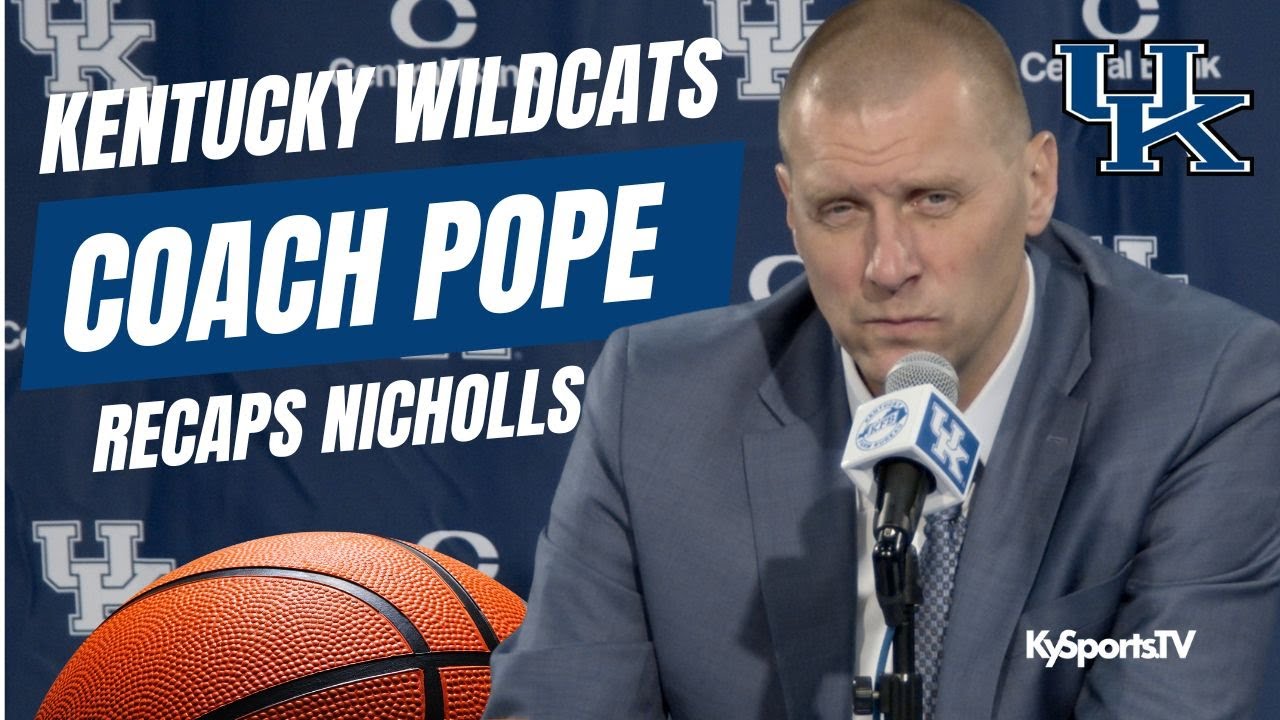 basketball Kentucky Wildcats Basketball Coach Mark Pope Recaps WIN vs Nicholls St in Season Opener By mistatony - November 4, 2025 0 FacebookTwitterPinterestWhatsApp Kentucky Wildcats mens basketball head Coach Mark Pope recaps the win over Nicholls State in the 2025-26 season opener.