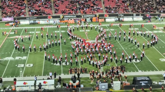 Louisville Cardinals Marching Band performs prior to the game against Clemson.