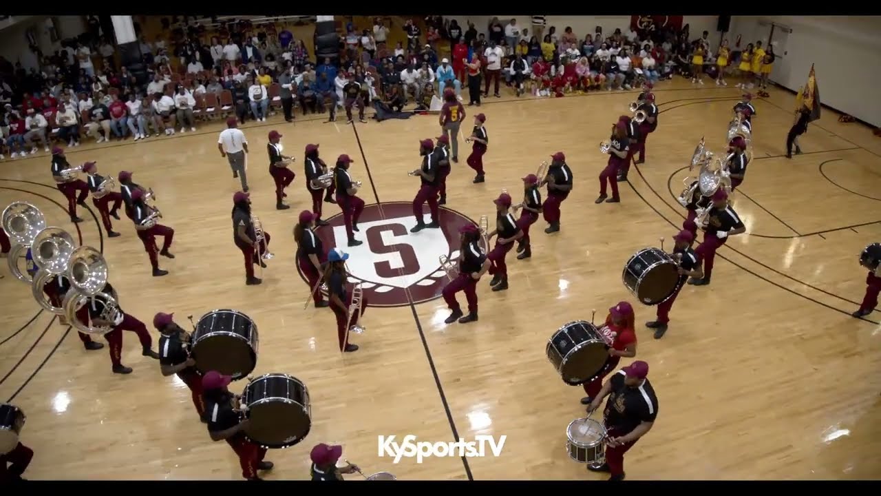Simmons Falcons Marching Band performs during homecoming basketball game vs Wilberforce.