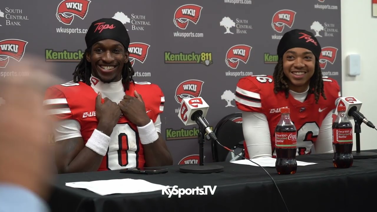 Football WKU Hilltoppers Football WR Henry & QB Tisdale Jr Recap WIN vs New Mexico St By mistatony - November 2, 2025 0 FacebookTwitterPinterestWhatsApp Western Kentucky Hilltoppers football players wide receiver Matthew Henry and quarterback Rodney Tisdale Jr. recap win vs New Mexico State. recorded by Brandon Barlow
