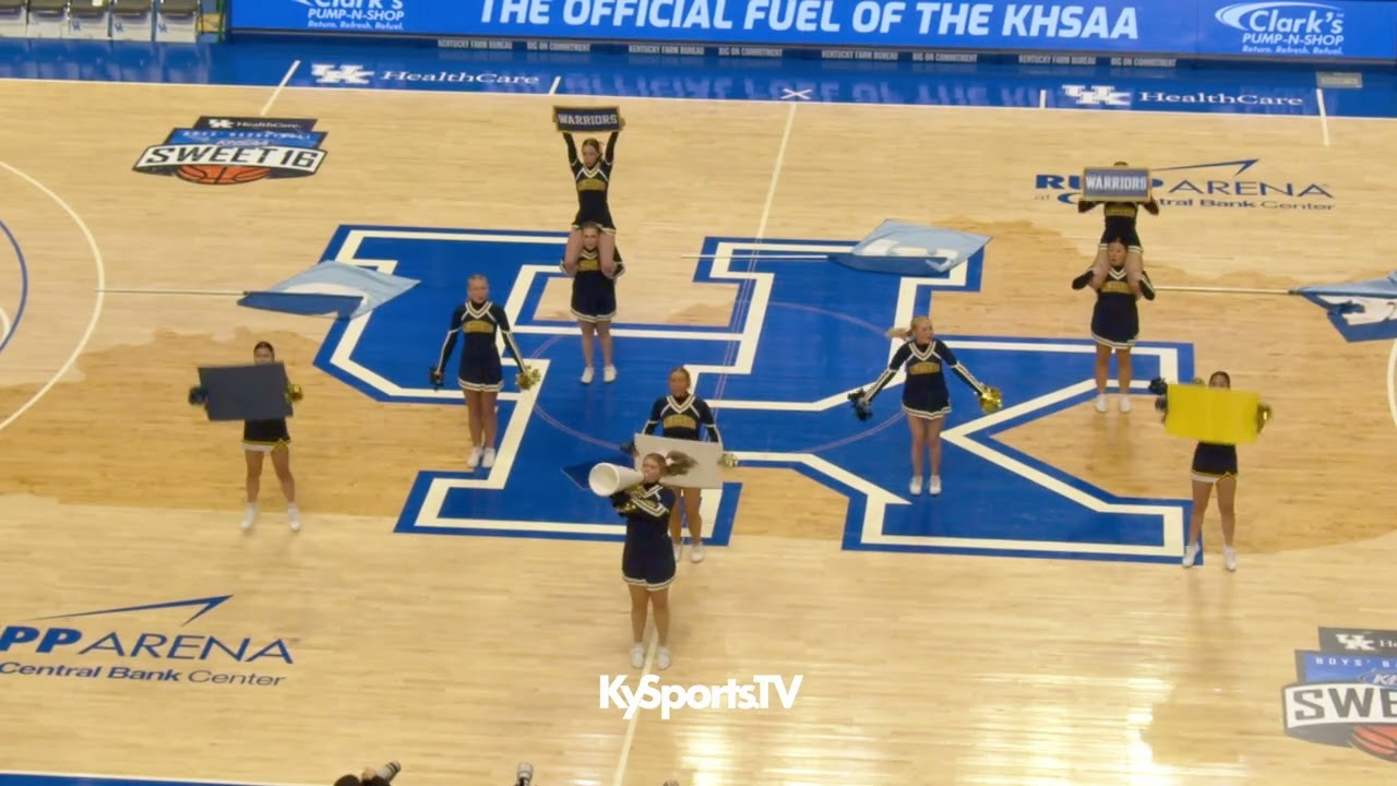 Daville Christian cheer squad performs during the in-game competition of Boys Sweet 16.